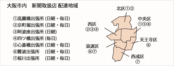 | 区 | 郵便番号 | 町 | 丁目 | 番地 | 毎日・日経新聞取扱店 | 朝日新聞取扱店 |
